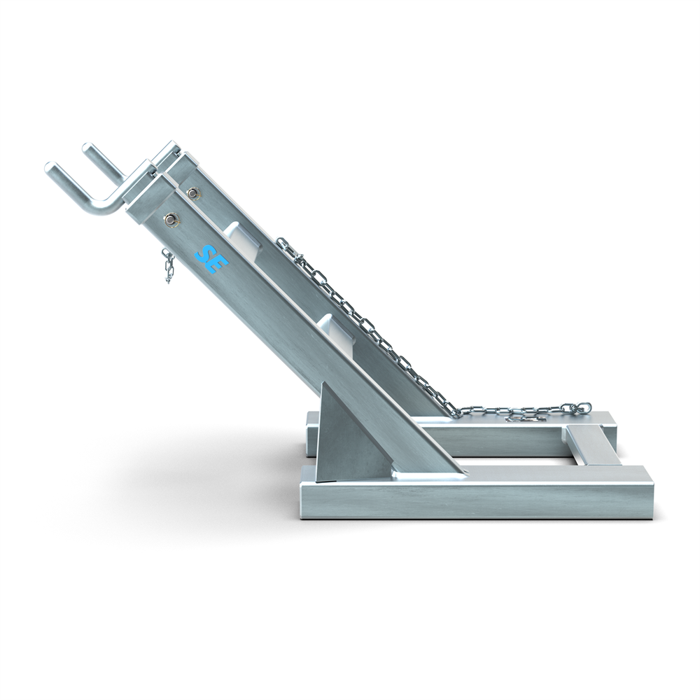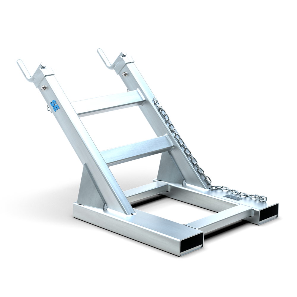 Der Heber wird auf die Gabelzinken eines Staplers geschoben und dient als stabiler Hebepunkt für Big-Bags. Die beiden Haken nehmen die Schlaufen des Big-Bags auf und ermöglichen ein sicheres Heben, Transportieren und Positionieren von Schüttgütern.