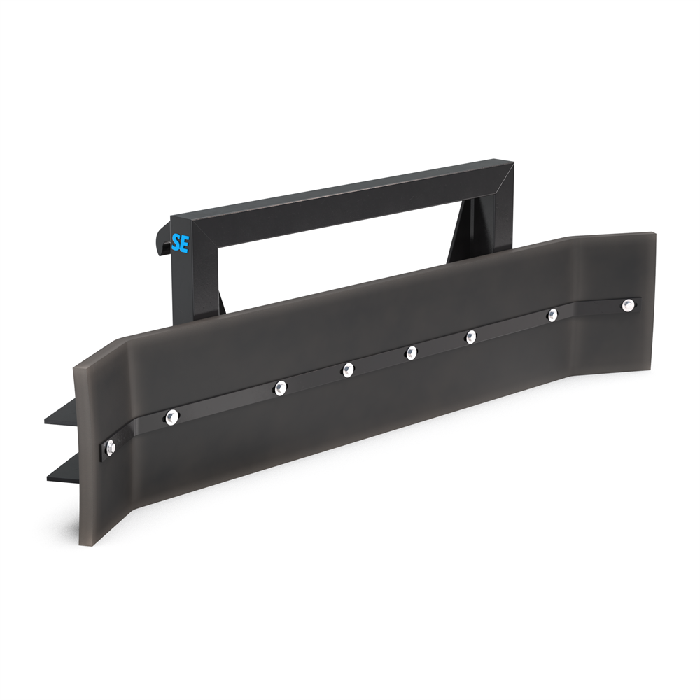 Mit einer Arbeitsbreite von 2000 mm, einer Höhe von 635 mm und einer Tiefe von 470 mm ist der Gummischieber ideal für größere Flächen geeignet. Der feste Blattwinkel mit angewinkelten Außensektionen verbessert das Räumergebnis und ermöglicht eine optimale Flächenabdeckung. Dank der Euro-Aufnahme lässt sich das Gerät schnell und unkompliziert an den Traktor anbauen.